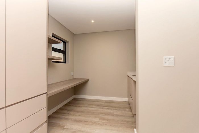 Effortless entertaining and family living in a secure estate, with an open-plan layout and stacker doors leading to an entertainment area with built‑in braai. Four bedrooms, three bathrooms, double garage.