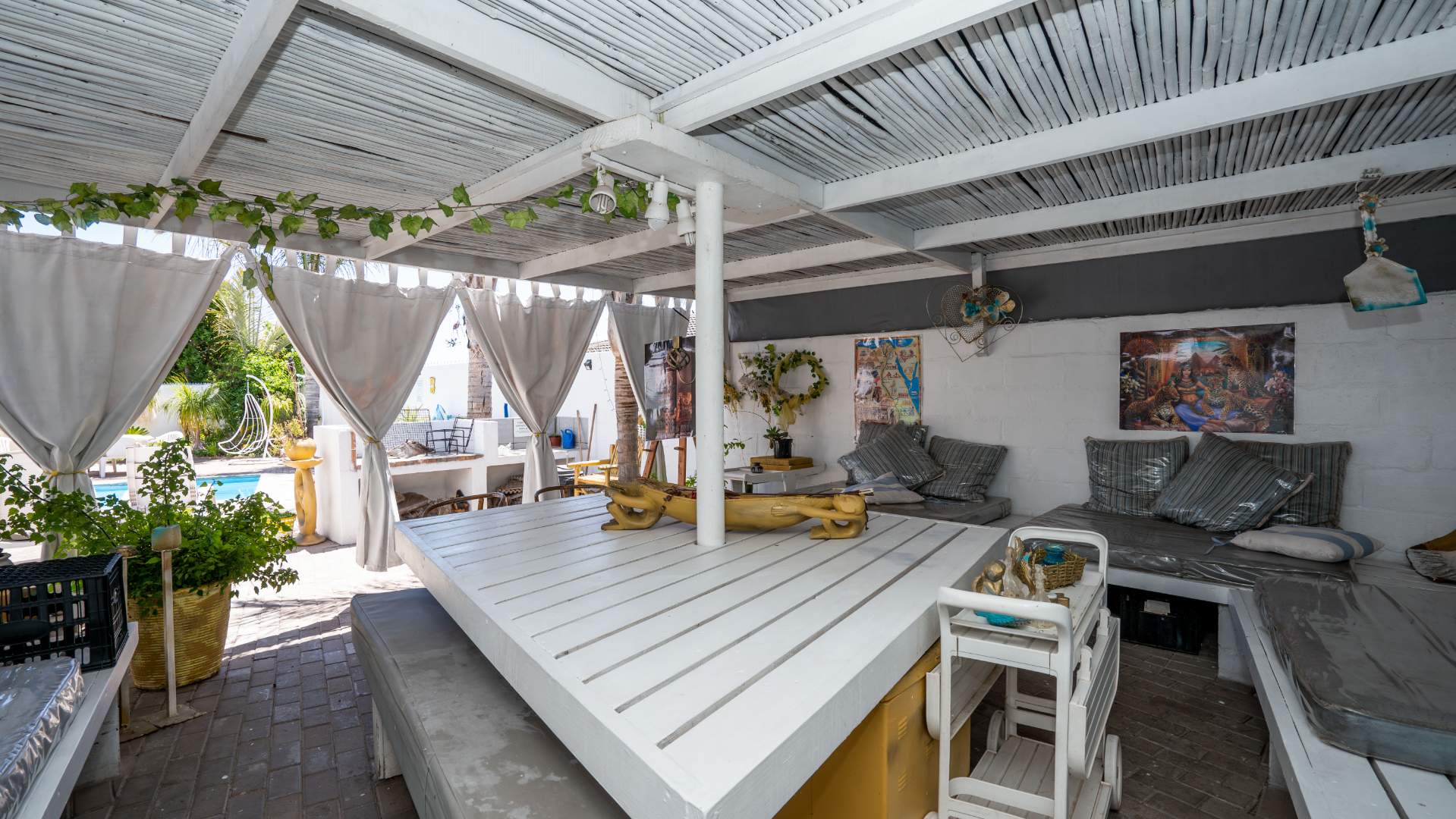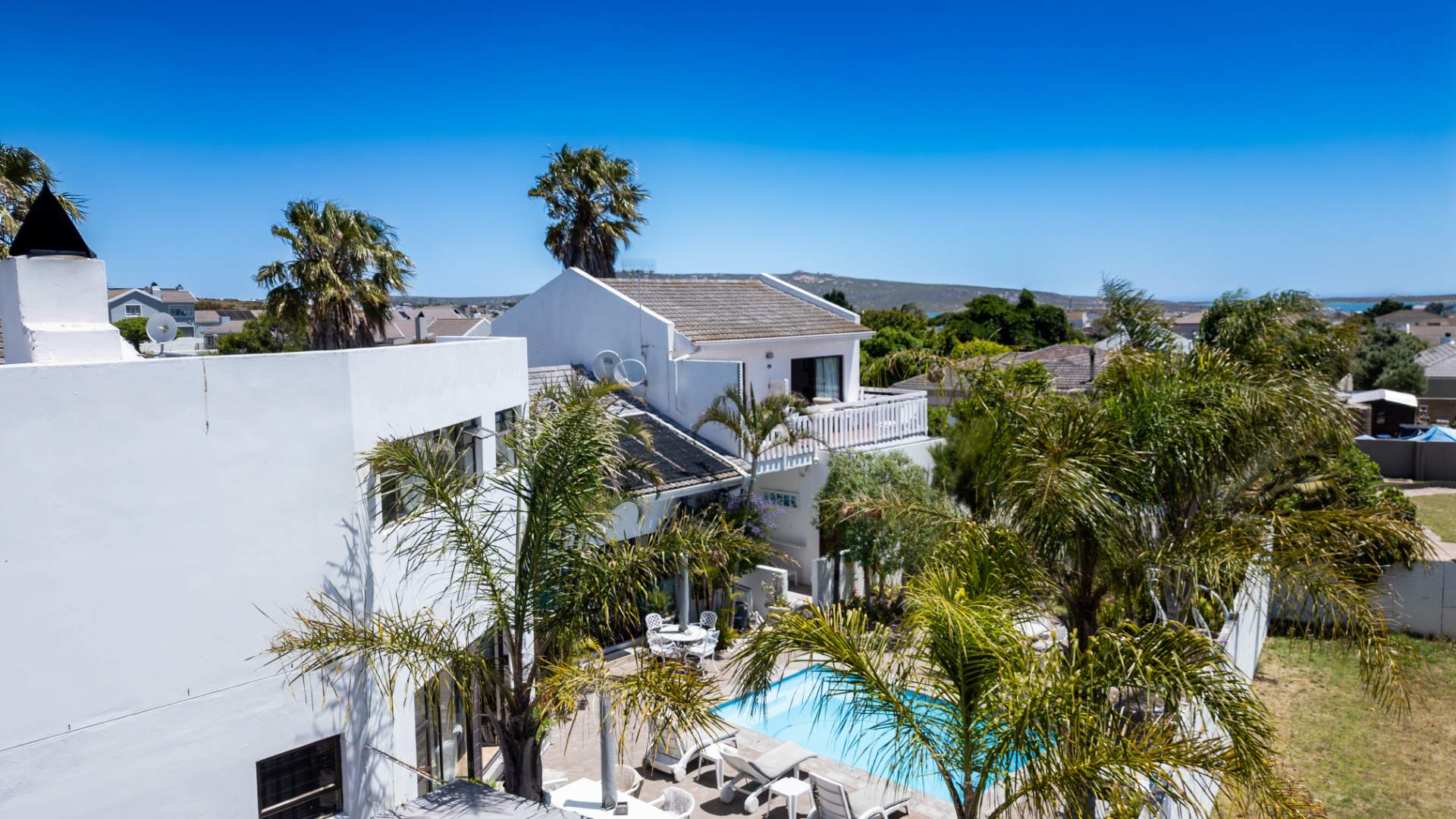 8 bedrooms, 8.5 bathrooms, registered guest house. Large entertainment area with braai and bar, opening to pool and garden. Balconies with elevated views.