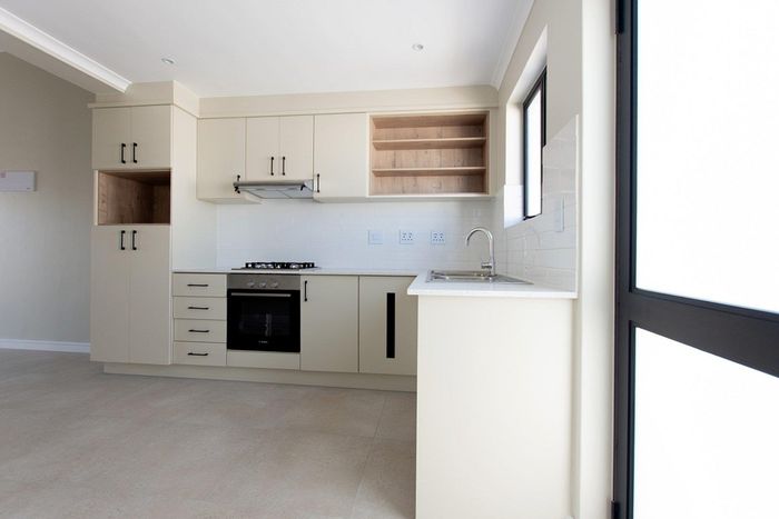 This modern home offers 2 bedrooms, 1 bathroom, a gas stove, open plan kitchen and living area, a single garage, and a solar geyser for energy efficiency, ideal for lock-up-and-go living, first-time buyers, or investors.