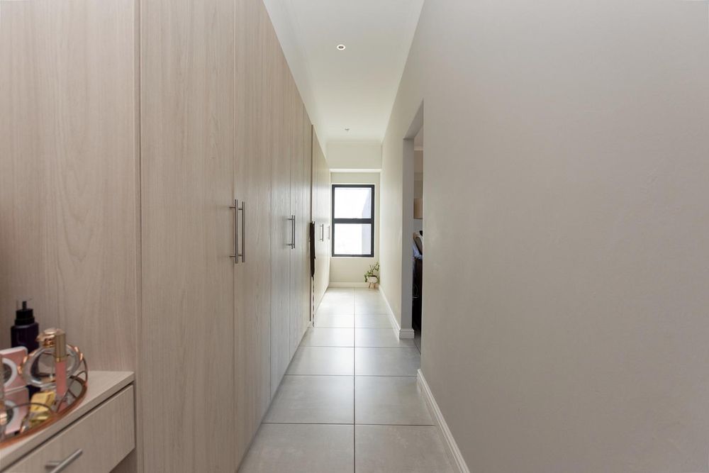 A guest bathroom is conveniently positioned along the passage. The north-facing bedroom wing features a spacious main suite with a walk-through cupboard and full en-suite bathroom. Two additional en-suite bedrooms provide privacy and comfort for family or guests.