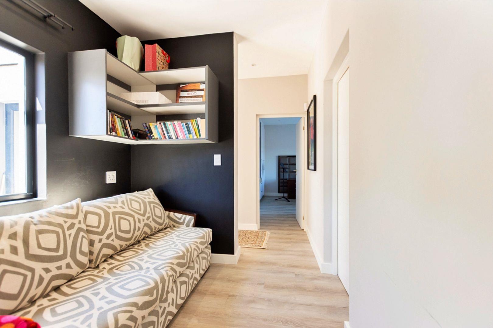 The lower level features three en-suite bedrooms, a study, and a convenient kitchenette. This area opens onto a swimming pool and outdoor space with a built-in braai, making it ideal for holiday accommodation or hosting guests separately from the main living area.