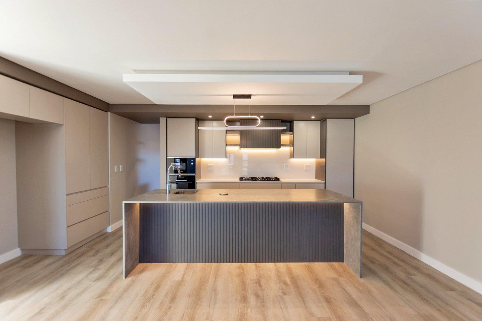 The kitchen is designed with both style and practicality in mind. It features high-end appliances, a large centre island, gas hobs, an electric oven, a microwave/air fryer, and a separate scullery with ample cupboard space.