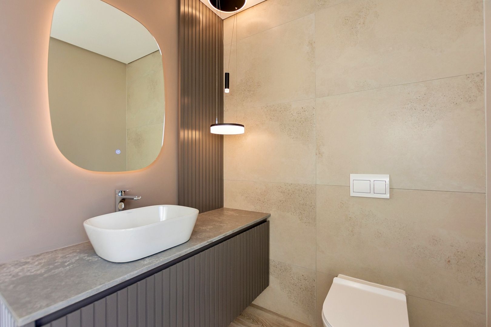 The third bedroom also features an en-suite shower and enjoys beautiful lagoon views. All bathrooms in the home are fitted with LED-lit mirrors and heated towel rails.
