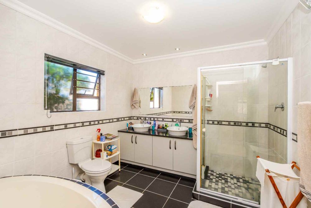 Right next door, the indoor entertainment room with its built-in braai and fold back doors becomes the go-to spot for weekend gatherings. Both rooms offer a stunning vantage point of the adjacent greenbelt and the Lagoon beyond, creating a seamless visual extension of your garden into the wild Langebaan landscape. Through the fold back doors, a covered patio provides a relaxing, private and beautiful morning coffee spot.