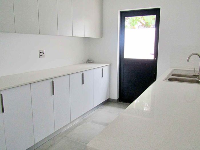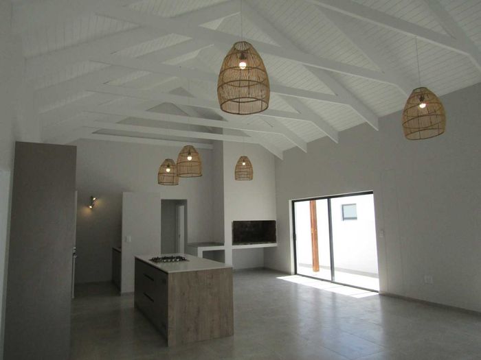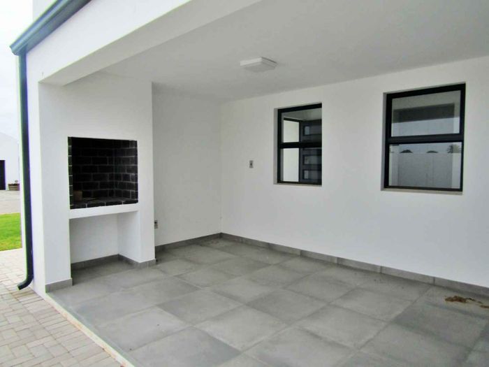 Coastal lock-up-and-go lifestyle in Sandy Point Beach Estate, one-minute walk to the beach. Single-level, pet-friendly home with covered patio and built-in braai, three beds, two baths, double garage.