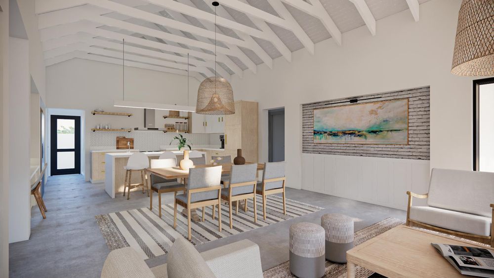 The layout is open and light-filled, with large windows that bring in beautiful natural light and create a seamless indoor-outdoor flow — perfect for entertaining or relaxing after a day on the beach.